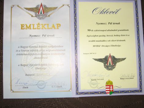 A szülinapi "Oklevelet" átadja Nyemec Pali bácsi.